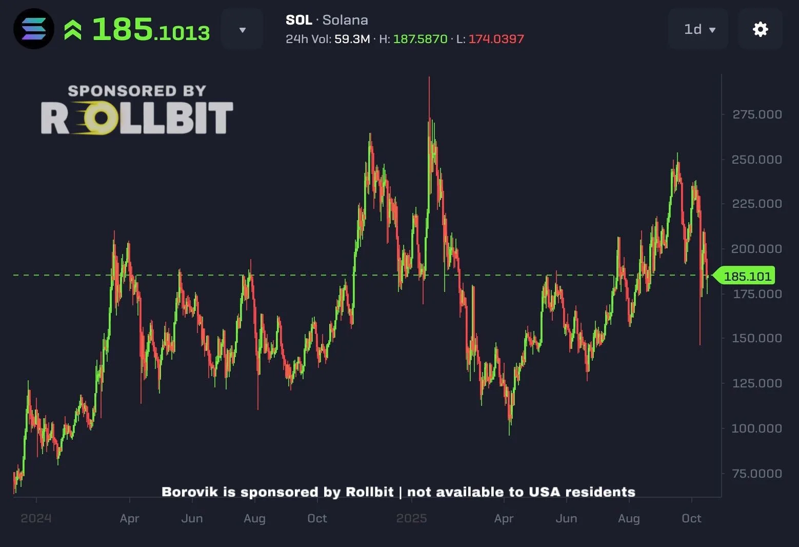 Analyst borovik notes that Solana’s chart structure reflects sustained higher lows since early 2024, reinforcing a long-term bullish trend. The $175 zone acts as short-term support, while resistance lies near $200 and $250. A successful breakout above $200 could open a path toward $275–$300, and possibly $1,000 in the next market cycle.