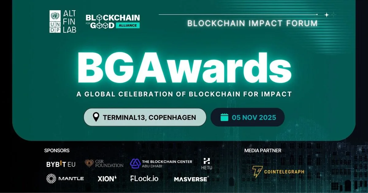 Day 2 will take place at T13 Nordhavn and culminate with the BGAwards Ceremony, honoring the best players in blockchain for good in 2025, with Bybit EU, GSR Foundation, Xion Foundation, Abu Dhabi Blockchain Center and Mantle Network as title sponsors. FLock.io, Hetu Protocol and Masverse also join as sponsors. Registration for Day 2 is available here.
