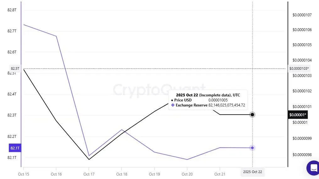 While the price has shown resilience, growing caution among investors. Between October 20 and 22, Shiba Inu’s exchange reserves increased from 82.09 trillion to 82.14 trillion SHIB, according to market data. This uptick signals that more holders are moving tokens to exchanges, often a sign of potential selling intent.