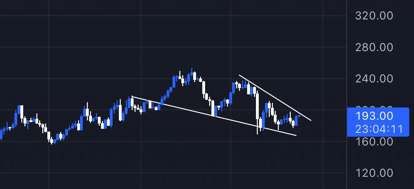Analyst 0xBossman notes the token has formed a descending wedge and predicts a breakout above $200 could target $240 to $280. Sustained momentum and volume may even push SOL toward $300, provided support near $170 holds.