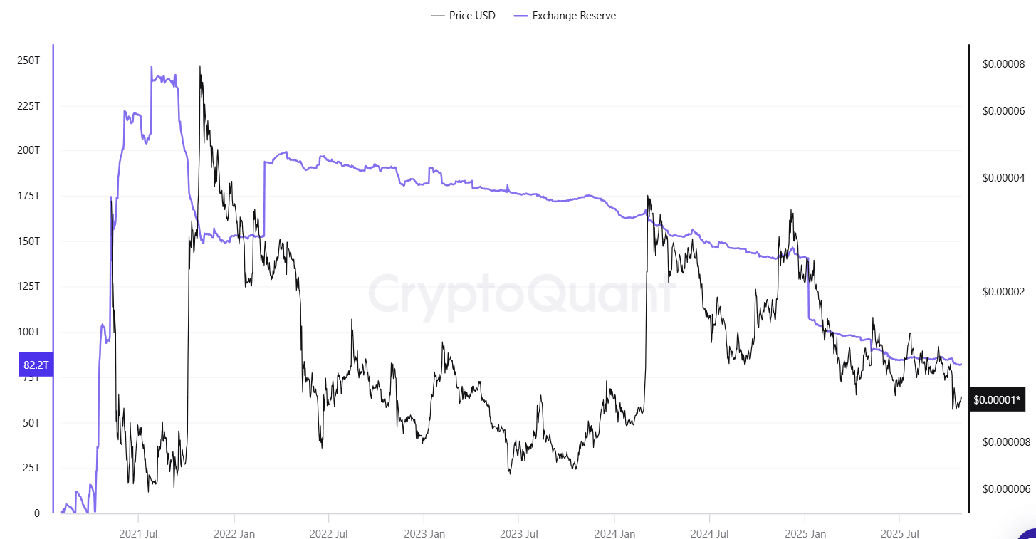 Another significant development involves the amount of Shiba Inu held on centralized exchanges. Current data shows that just over 82 trillion tokens remain on trading platforms, approaching the four-year low recently registered.