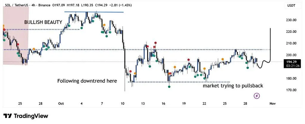 BitGuru added that market momentum is gradually rebuilding and that a “single strong move” could reignite bullish sentiment across Solana’s ecosystem. Hence, traders are closely monitoring on-chain metrics and institutional flows for signs of renewed upward momentum.
