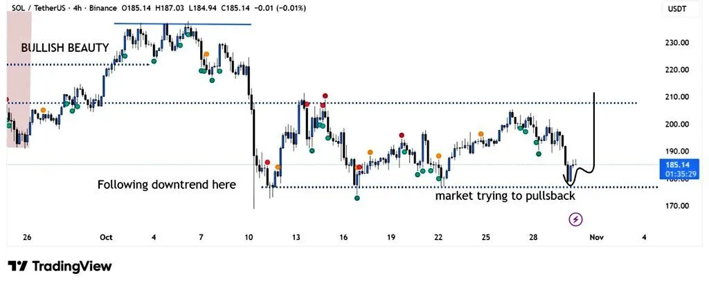 According to BitGuru analysts, Solana is consolidating between key support at $180 and resistance near $210. Buyers continue defending the lower zone, hinting at potential accumulation.