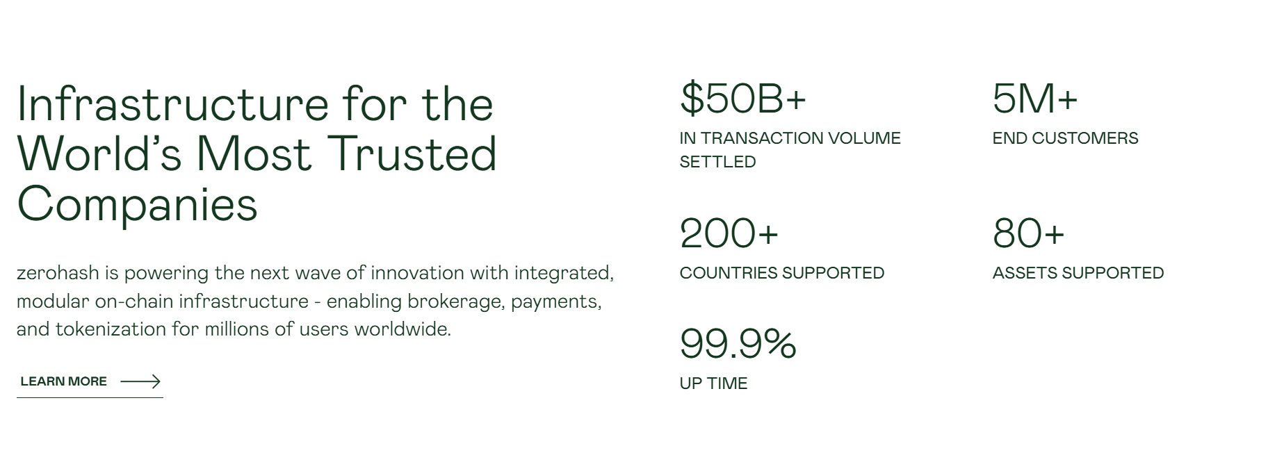 In September 2025, Zerohash completed a $104 million Series D-2 round led by Interactive Brokers, with investors including Morgan Stanley, SoFi, and Apollo, raising its valuation to $1 billion. Meanwhile, Fortune reported that Mastercard is in advanced talks to acquire Zerohash in a deal valued between $1.5 billion and $2 billion, though negotiations remain ongoing.