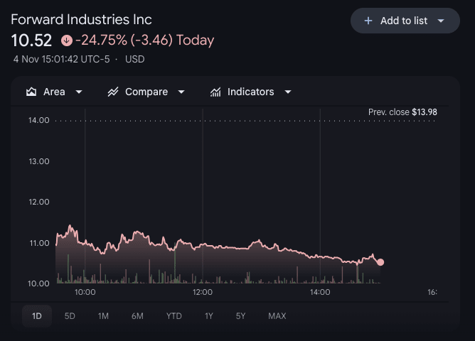 As per the issued press release, the Board of Directors approved the $1 billion buyback program on November 3, 2025. The plan allows Forward Industries to purchase its common stock through open-market transactions, private deals, or accelerated share repurchases. According to the company, the program provides flexibility to act on favorable market conditions while ensuring compliance with SEC Rule 10b-18.