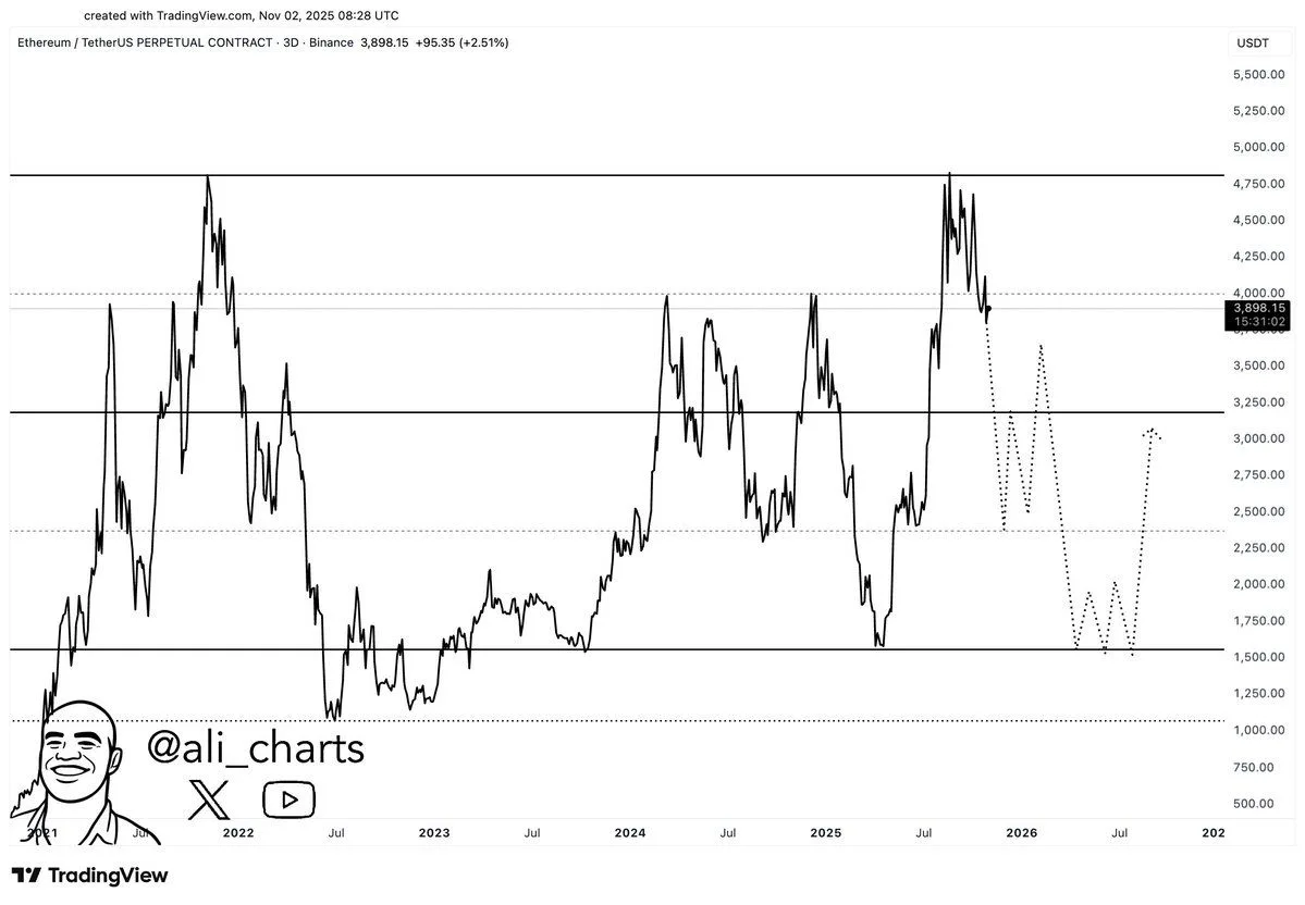 Ethereum's decline represents a stark reversal from its position just 36 hours earlier, when the asset traded above $3,900. Market observers had been discussing the possibility of a breakthrough past $4,000. Instead, the cryptocurrency plummeted to $3,250, erasing all year-to-date gains and incurring a loss on an annual basis.
