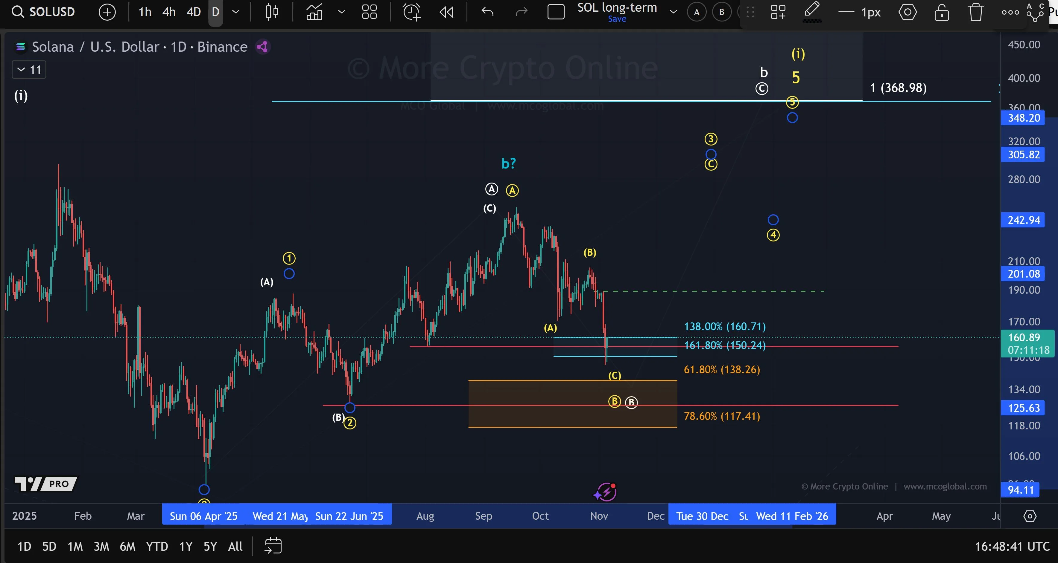 Analysis from More Crypto Online indicates that Solana’s price is moving within a corrective ABC structure on the daily chart. The asset recently rebounded from the 61.8% Fibonacci retracement near $138, suggesting potential short-term support. If this level holds, buyers may target resistance zones at $150 and $160 before testing $201. Failure to sustain above $138 could expose $125 and $117 as lower supports.