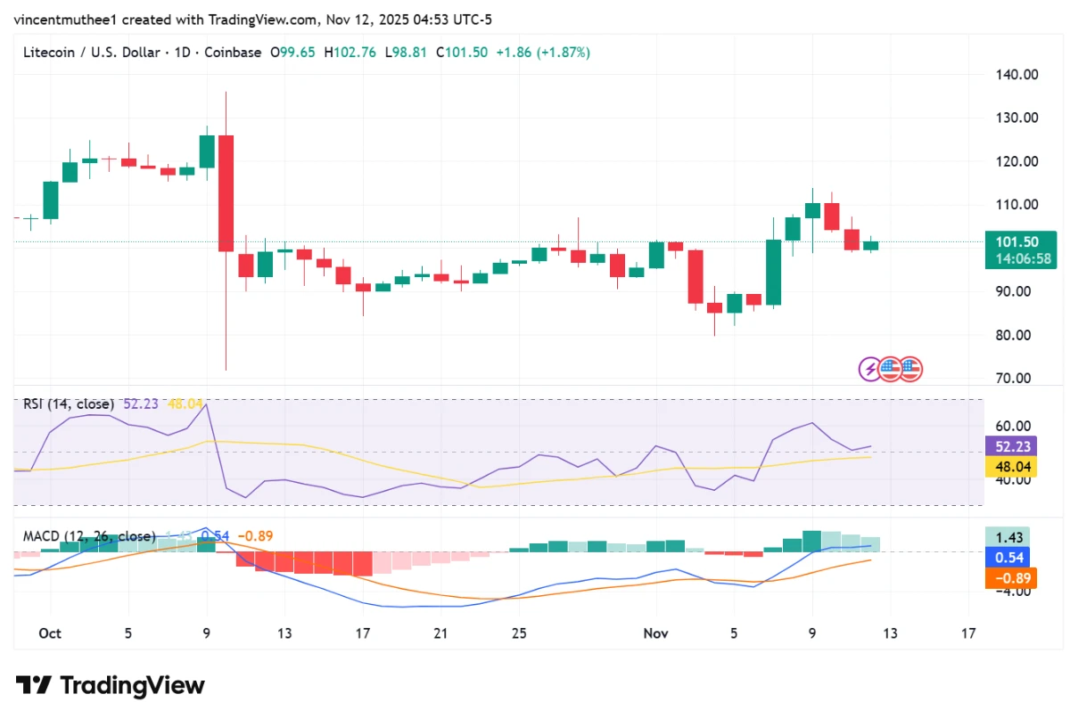 Since the October 10 market crash, Litecoin (LTC) has been stuck around the $100 price level. However, with the general crypto market recovering and privacy coins still in the spotlight, LTC is showing signs of recovery towards its previous heights.