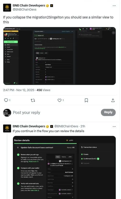BNB Chain Multi Sig Migration Screen. Source: BNB Chain Developers on X