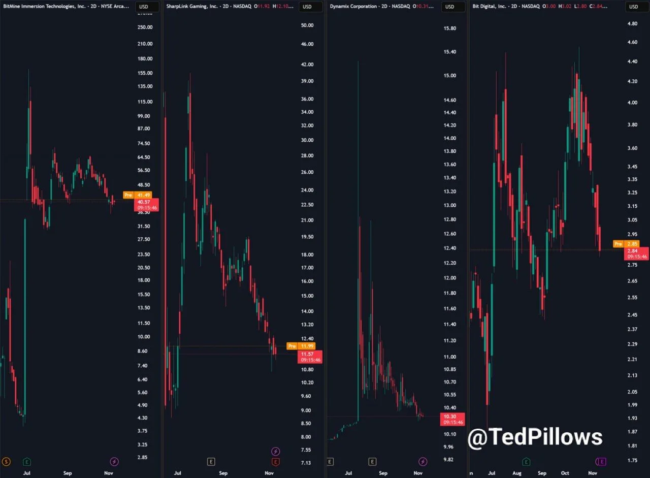 Ethereum Treasury Stocks Slide BitMine Holds Up: Source: TedPillows