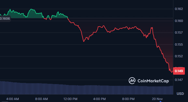 At press time, Dogecoin was trading at $0.1491, reflecting a 7.42% decline over the past 24 hours.