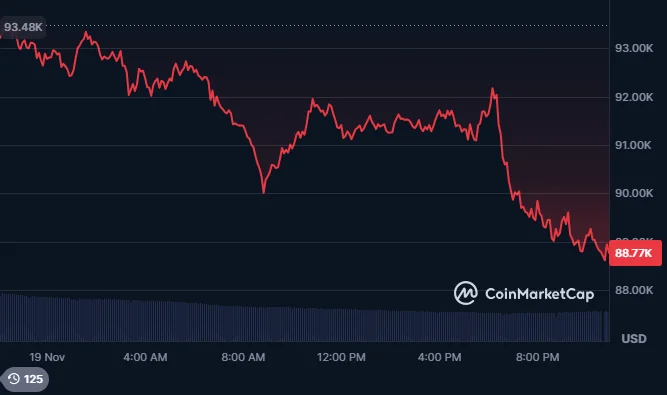 Bitcoin has declined approximately 30% from its peak in October. The cryptocurrency briefly touched all-time highs before entering a correction phase. Current trading levels hover around $88,891, creating uncertainty among institutional investors.