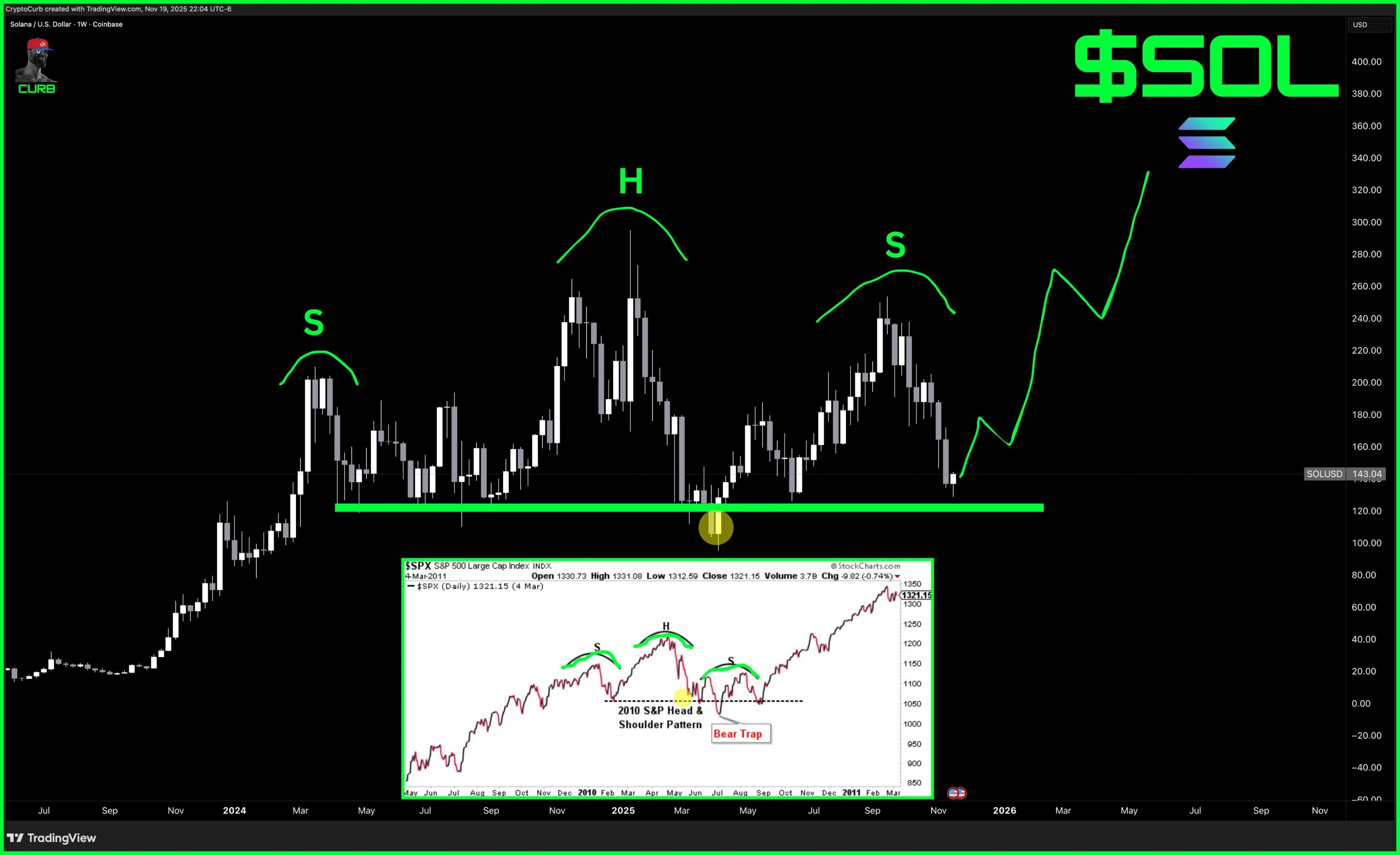 CryptoCurb offers a similar stance, noting that the widely watched head-and-shoulders may fail if buyers continue defending the $130 to $135 support. Price has held that neckline through repeated tests, signaling resilience.