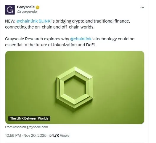 Grayscale concludes that this combination of cross-chain reach, tokenization focus and infrastructure usage makes LINK a candidate for diversified crypto portfolios, placing it alongside larger assets such as bitcoin and ether in the firm’s internal sector analysis.