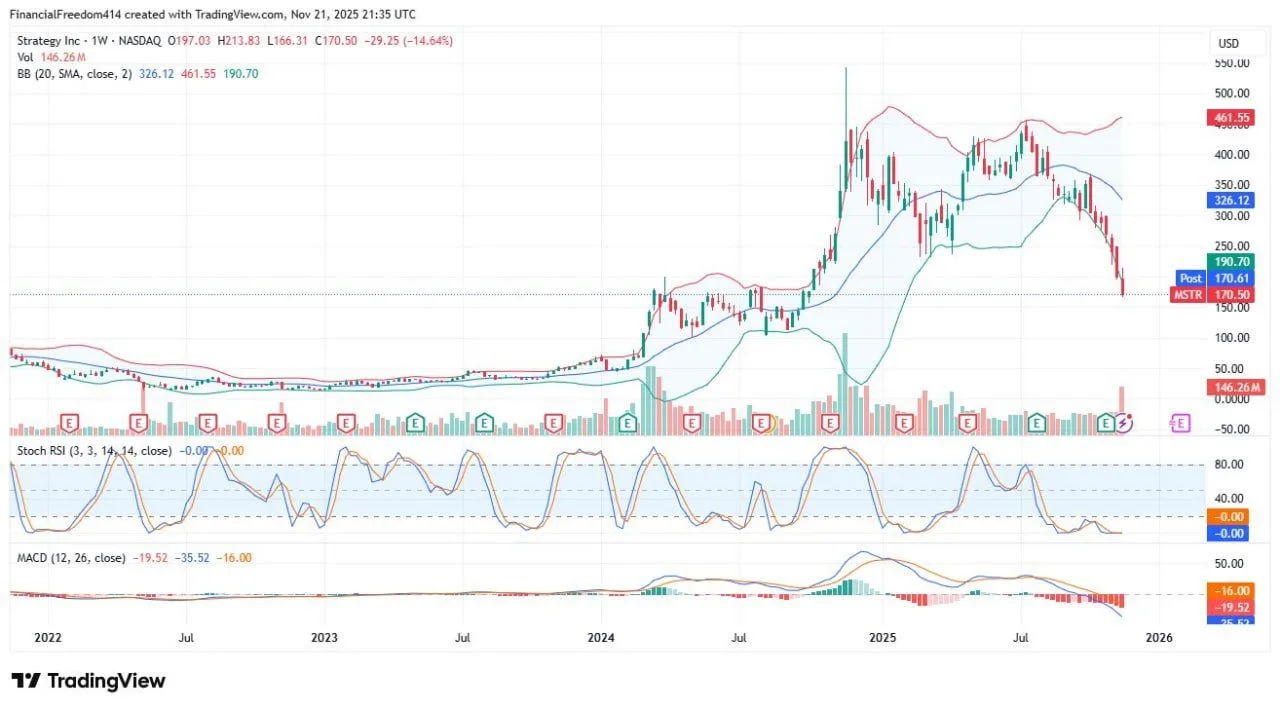 MSTR Weekly Chart Analysis. Source: FinancialFreedom414 on X
