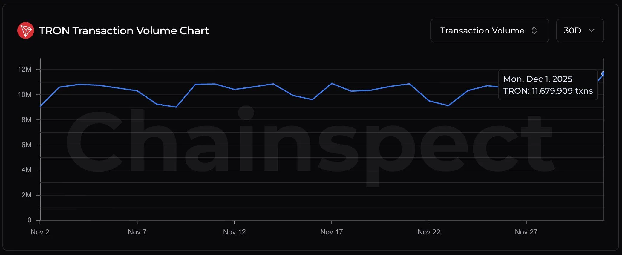 A breakout must come with convincing volume to shift trader psychology. If that happens, TRX could gain momentum. If not, it risks being squeezed lower. To add on to the bullish narrative, at the overall transactions, TRON processed 11.67M+ transactions on Dec 1, its highest daily activity in the last 30 days. And with this, momentum is clearly building.