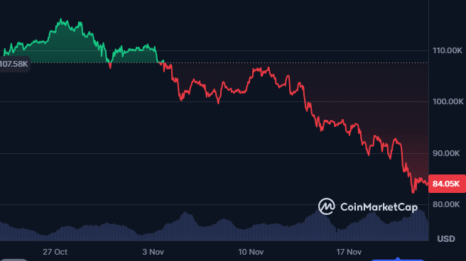 The development comes as Bitcoin trades at around $84,068, representing a 23% decline over the past month. The digital asset has fallen nearly 30% from its October peak, pushing year-to-date returns into negative territory. The broader cryptocurrency market capitalization dropped below the $3 trillion threshold, declining an additional 2% in the previous 24 hours.