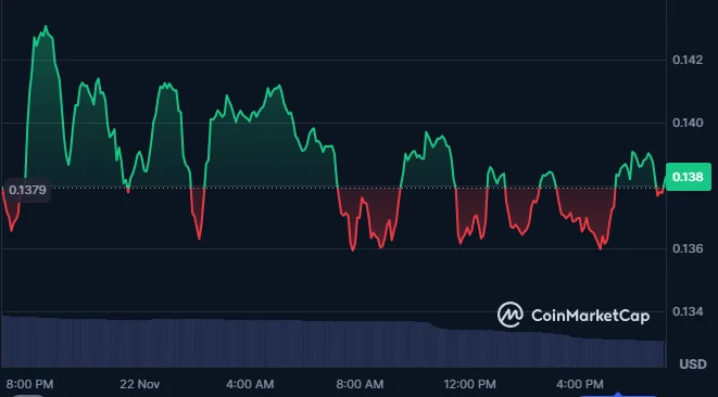 Market data shows Dogecoin's trading volume dropped 41.14% to $2.36 billion during the period. The sharp decline in trading activity directly impacted the token's price performance. Dogecoin's value fell to $0.1369, representing a 1.46% decrease within the timeframe. At the time of writing, Dogecoin is trading at $0.1382, suggesting a 0.96% increase in the last 24 hours.