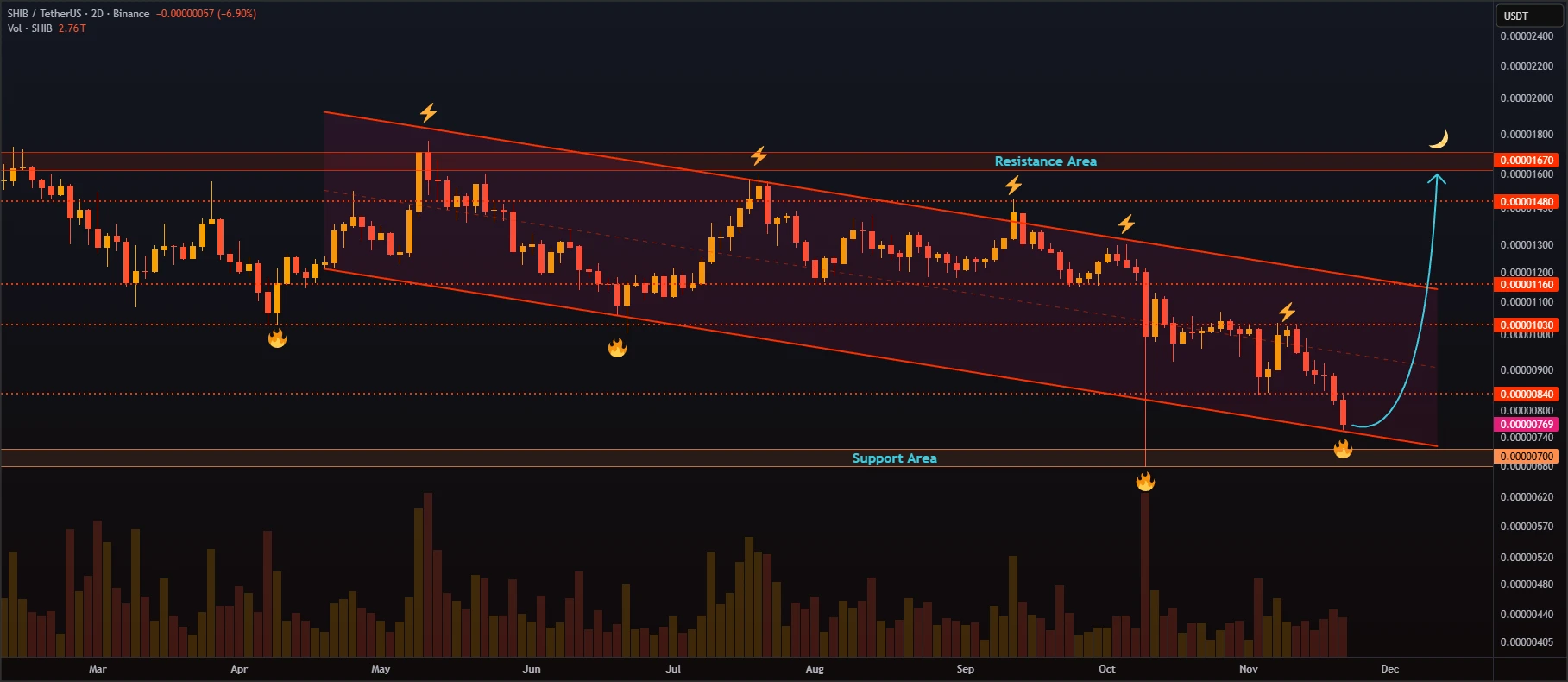 Price action sits at a critical zone. A descending channel support that continues to attract demand. A bounce from here may target higher areas. The structure looks fragile yet loaded with potential. Can SHIB reclaim strength before the year ends?