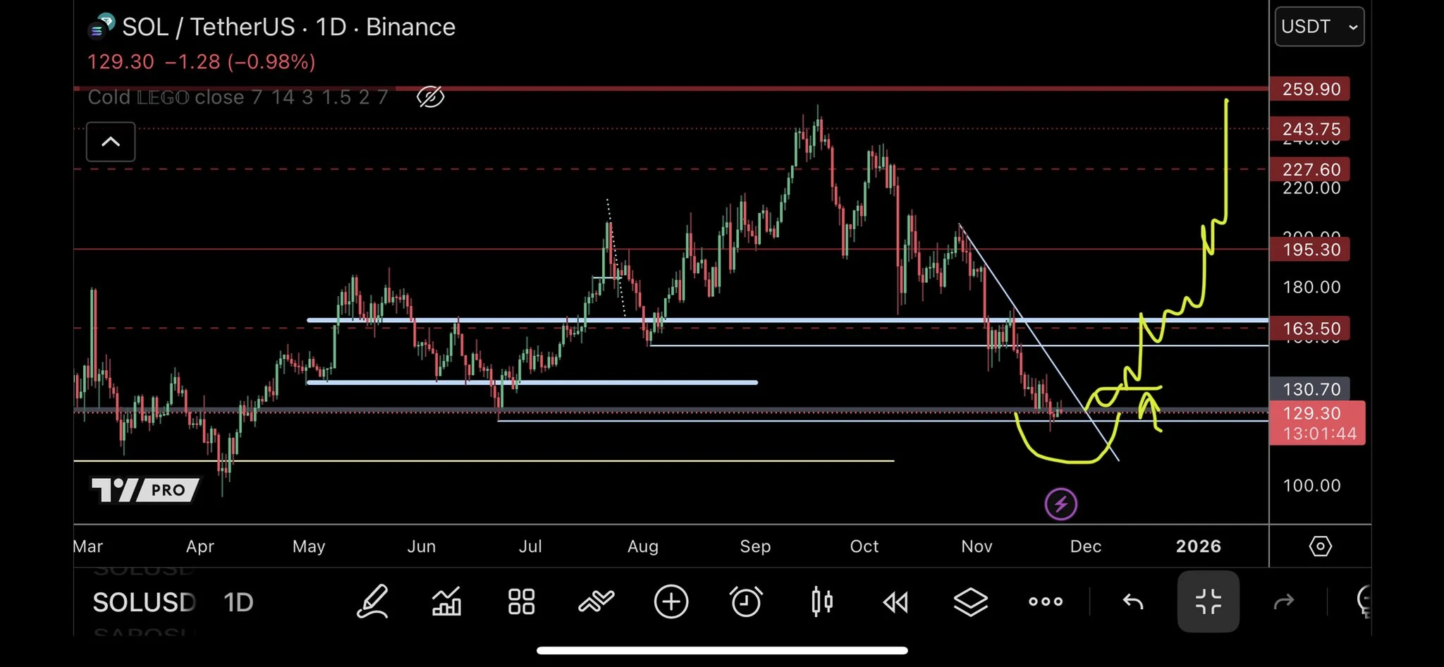 TraderSZ noted that Solana sits at a decisive level where buyers attempt to build a foundation after several weeks of decline. A move above the descending trendline would confirm an early shift in momentum. Hence, reclaiming $130 remains essential for restoring confidence.
