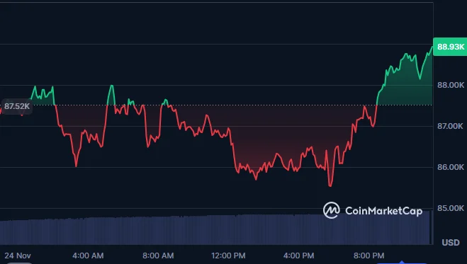 At the time of writing, Bitcoin trades at around $88,928, suggesting a 1.55% increase in the last 24 hours.