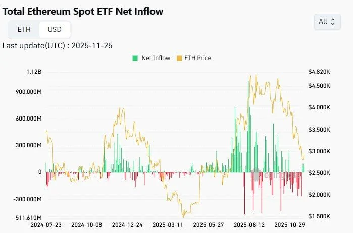 Ethereum Spot ETF Flows. Source: Coinglass / X