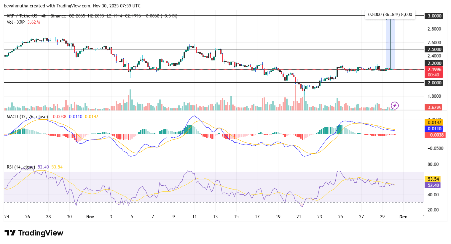 The current price structure remained constructive for bulls. XRP traded firmly above the critical $2.00 support zone, which buyers defended throughout recent sessions. This level served as a foundation for the next potential leg higher.