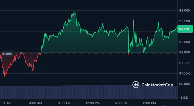 At the time of writing, Bitcoin is trading at around $93,125, suggesting a 2.28% surge in the last 24 hours.