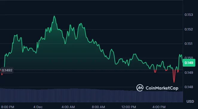 Dogecoin has increased by 0.7%, currently trading around $0.149. The price saw an early surge to approximately $0.153 before gradually retracing and stabilizing near $0.150. Overall, the market shows mild volatility with consolidation around the $0.149–$0.150 range.
