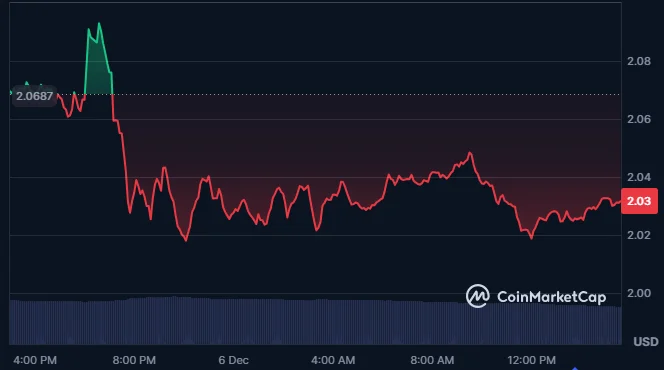 Price action needs to hold above $2 for the bullish scenario to remain valid. A break below this support would invalidate the reversal thesis and could trigger additional selling.