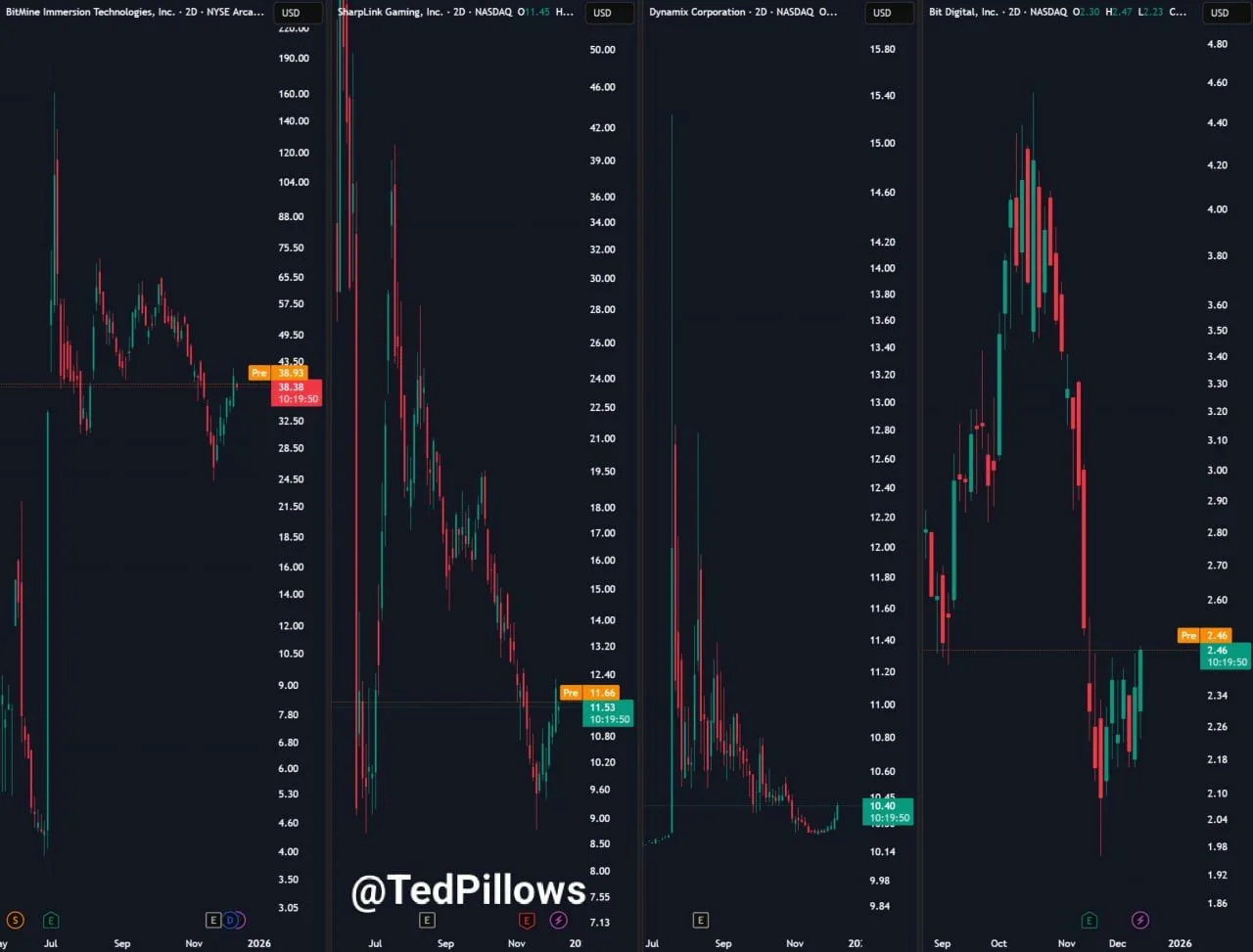 Ethereum Treasury Companies Price Charts. Source: @TedPillows