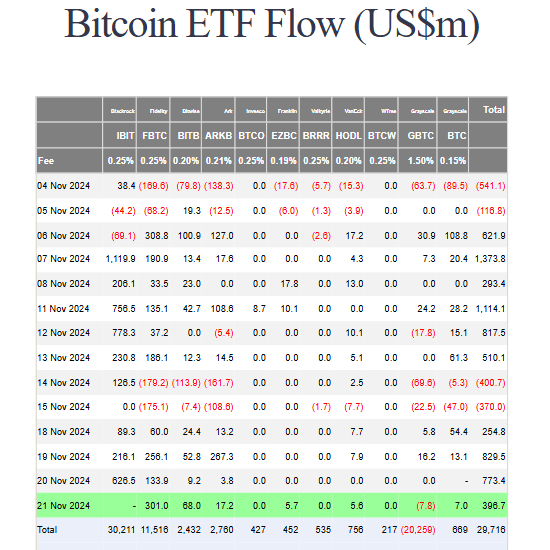 Trading volumes on this index reached $70 billion on Nov. 21. While ETFs like BlackRock’s iShares Bitcoin Trust attracted billions in inflows, MicroStrategy raised $3 billion to expand its Bitcoin holdings despite a sharp drop in its stock price. Similarly, MARA Holdings issued $1 billion in convertible notes for its own Bitcoin acquisitions. Meanwhile, Coinbase faced backlash over its decision to delist Wrapped Bitcoin (wBTC). Accusations suggest that Coinbase decided to delist wBTC to promote its own Bitcoin wrapper, cbBTC.