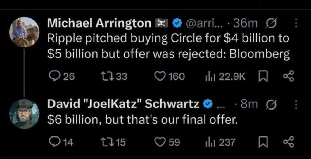 According to available information, Ripple allegedly offered to acquire Circle based on a valuation of $4–5 billion. These figures are based on market expectations ahead of Circle’s potential IPO and the opinions of experts. None of that, however, stopped the firm from responding with a rejection.